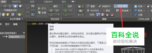 如果我们要移除边循环,按住ctrl+shift键,单击边循环可以将其移除。 如图,我们把茶壶上部分循环边都移除。