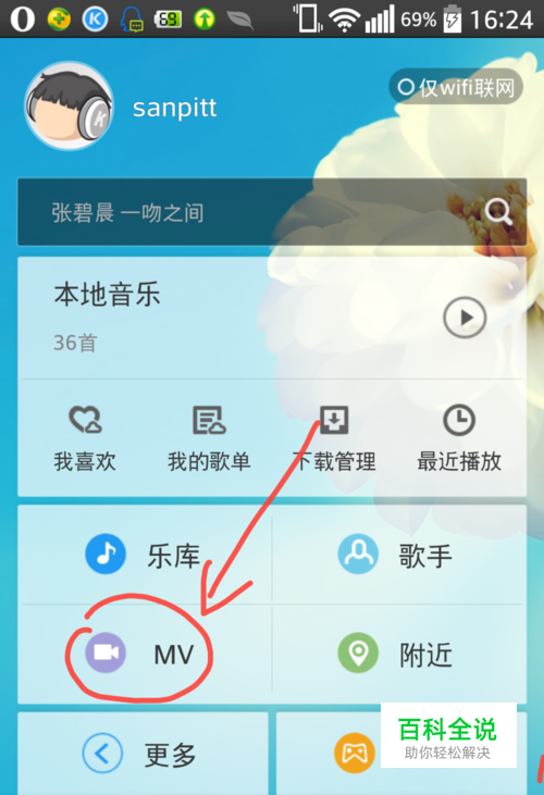 随便找一个MV,或者搜索自己喜欢的MV,点击它进入播放,建议在WIFI网络环境下操作。