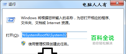 首先,在开始→运行中输入:%SystemRoot%\System32→确定。