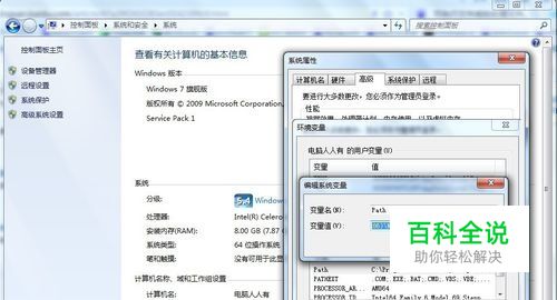 检查系统变量中的path,确保包含%SystemRoot%\system32路径,如果没有则添加进去即可→确定。