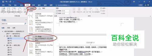 假如一篇文档需要从第3页开始添加页眉,前两页不需要添加页眉,在第2页末尾或第3页开头点击一下,使光标位于此位置,然后点击布局→分隔符→分节符→下一页;