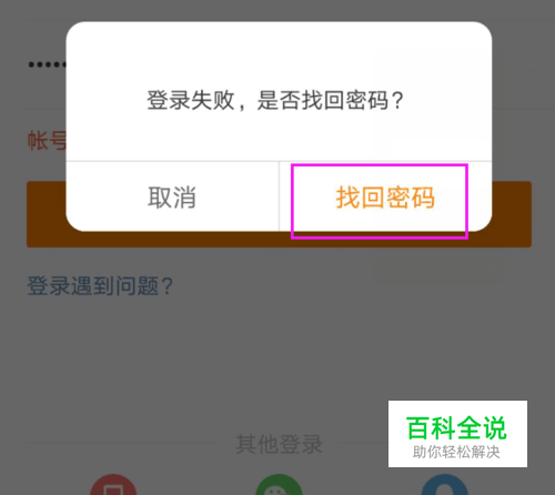 假如我们忘记了密码,就可以输入错误的密码,就会跳出【找回密码】,点下,如图。