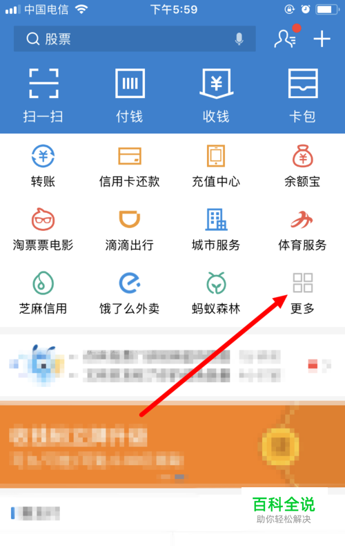 首先在手机上打开并登录支付宝App,并在首页面点击 更多 。