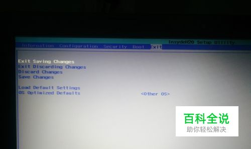 再次进入Bios页面,在Exit选项下面把最后的other os 改回win7 os 按Fn+F9 回车 不知道这是干什么的,但没有这一步肯定还是a5错误 再按Fn+F10保存