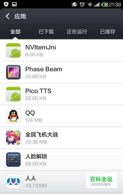 点开”应用->全部“,进入应用信息查看与管理页面。在全部应用中,找到QQ软件。一定要选择全部,不然可能找不到QQ。