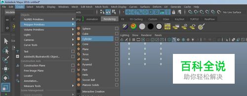 打开Maya软件;新建一个圆柱体:create---polygon---》cylinder