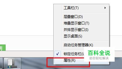 在任务栏空白处用鼠标单击右键,从菜单中选择属性选项,打开任务栏和开始菜单设置对话框。
