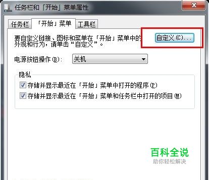 在开始菜单选项卡下选择自定义按钮,打开开始菜单自定义设置面板。