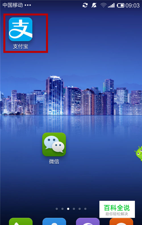 首先,我们在手机桌面上找到支付宝,点击进入支付宝界面。
