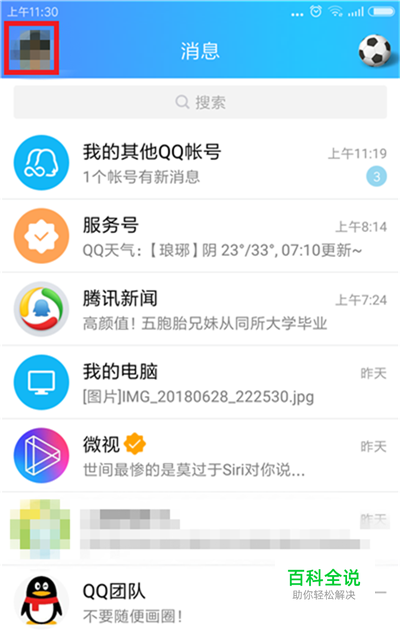 进入QQ首页后,在左上角找到自己账号的头像并点击。