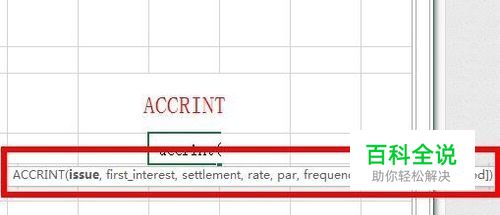 ACCRINT函数的使用格式为:=ACCRINT(issue,first_interest,settlement,rate,par,frequency,basis)。