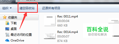 进入回收站后,点击左上角清空回收站(在还原所有项目左边),如图所示。