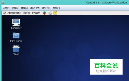 首先启动CentOS系统,进入到桌面,如下图所示: