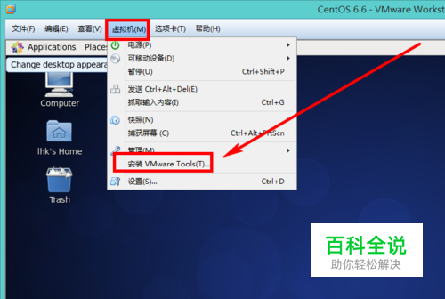 单击VMWare的【虚拟机】菜单,选择【安装VMWare Tools】命令,如下图所以: