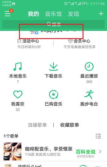 第一步在我们的手机中打开音乐,登录账号之后,点击账号图像,如下图所示: