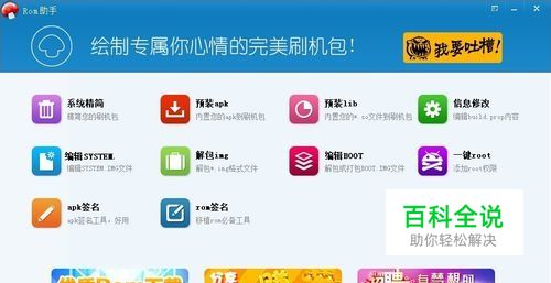 Rom助手是一款针对安卓智能设备固件(简称Rom)开发的Windows平台上首款优化软件,轻轻点击鼠标就能优化Rom,初学者Romer完全不用记忆复杂的命令,让Rom优化告别了命令行时代。 Rom助手是一款手机刷机包简易的编辑和制作工具。通过直观的操作界面和简洁的使用流程,实现对刷机包文件的修改和制作。彻底摆脱linux系统门槛。