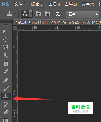 点击仿制图章工具,按住键盘上的Alt键鼠标放在图片上微博水印的相似的地方点击,然后再在微博水印上点击,多重复几次,保存图片即可
