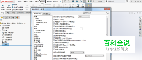 我们需要打开solidworks,选择零件选项绘制一个完整且封闭的草图,退出草图绘制,然后在设计树内点击草图,选中草图。