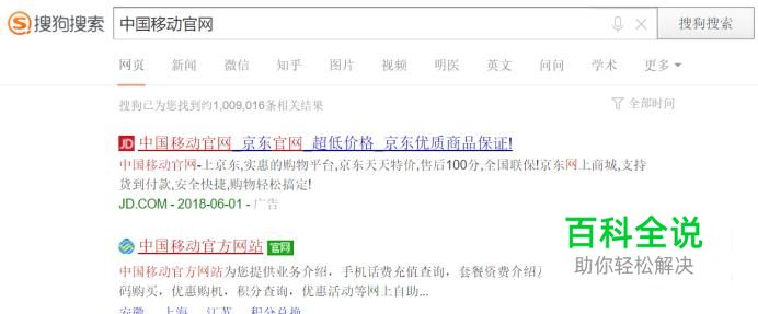 首先,我们在搜索引擎中输入“中国移动官网”,然后点击搜索。