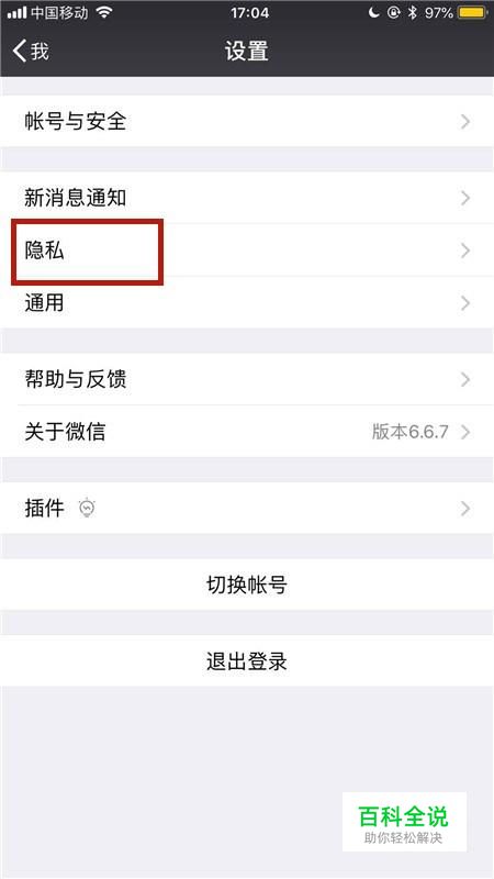 然后点击隐私,如下图所示。