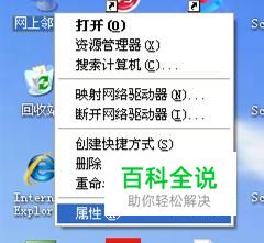 在桌面上的“网上邻居”上右键单击,选择“属性”。