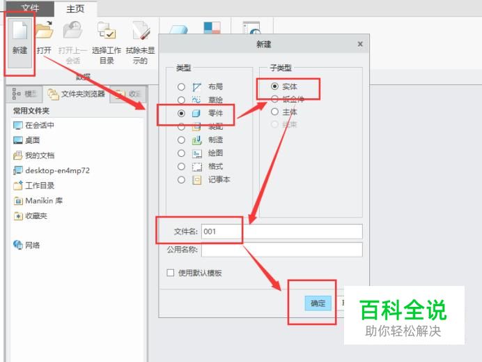 打开creo软件,创建一个新零件,创建过程如图所示。