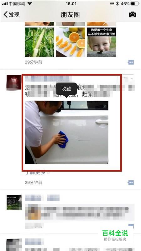 首先将好友带有视频的朋友圈收藏,如下图所示