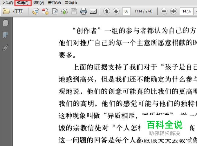 首先,我们打开一个PDF文档,然后我们点击工具栏中的编辑;