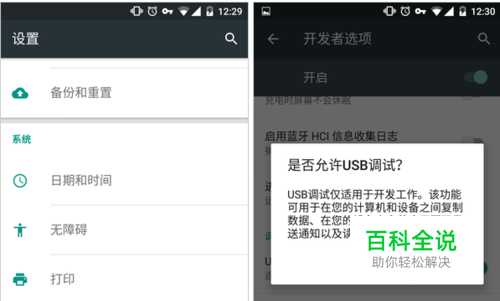 先打开手机的USB调试功能,各个型号手机打开方式差不多,如下图: