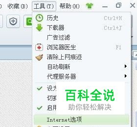 在展开的菜单里,选择最下面一条"Internet选项"