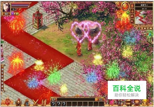 在结婚会场中,新人可找NPC月老进行结婚仪式,正式结为夫妇,二人同时获得夫妻关系及称谓。婚礼仪式时,若两位新人都身着新婚时装,则会出现绚丽烟火助兴贺喜。