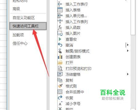 然后点击快速访问工具栏,点击这个选项以后就能在左侧的位置看到一些相关的设置功能了,直接点击进行设置即可。