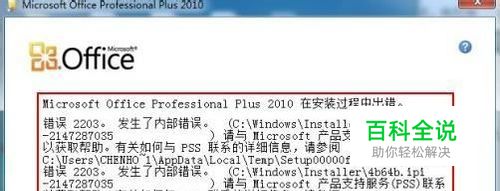 解决在WinXP系统中安装Office2010提示2203错误