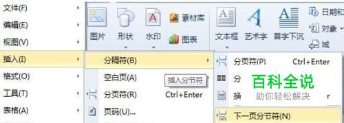 鼠标移动到正文部分最后一个字符后面,在菜单栏选择插入--分隔符--下一页分节符。