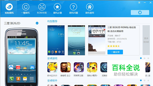 * 选择ROM包: 接下来如果已下载好三星 i8262d ROM包的朋友,在一键刷机界面,直接添加一个已下载好的ROM就可以了。如果您还没有下载ROM包,则点击"前往下载",在ROM市场中选择喜欢的ROM,点击“一键刷机”按钮,即可开始下载ROM包
