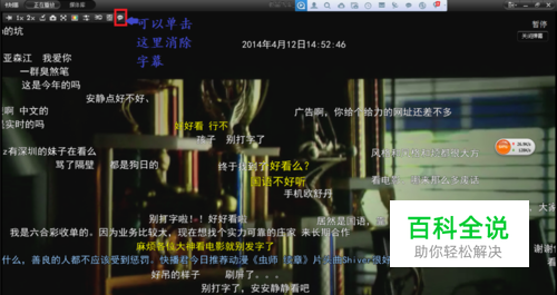 将鼠标移到左上角, 在左上角上有一个按钮可以消除字幕,如图