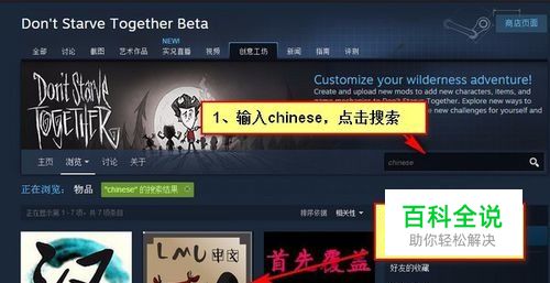 然后在搜索栏里输入chinese,选下面的mod,点开之后订阅就行了。(mod功能介绍)可将游戏语言改成中文,支持简繁体中文,默认为简体中文,在mod设置中修改为游戏默认和繁体中文。 这样饥荒游戏就会设置成中文的。