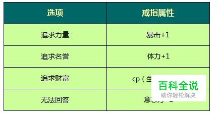 开场动画结束后,玩家们会面临一个来自NPC的提问,有4个选项,根据玩家们的回答不同,会给玩家发一枚属性不同的戒指。