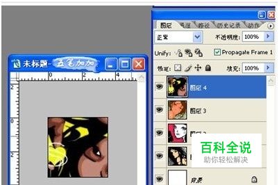 就是加文字啦。注意的是文字层保持在最上方。这样文字也就在每张图片的上面啦。 怎么加文字,点中后在文件内点一下就可以输入文字了。(快捷键:T因为现在下载的版本可能是绿色版的所以快捷键用不了。)