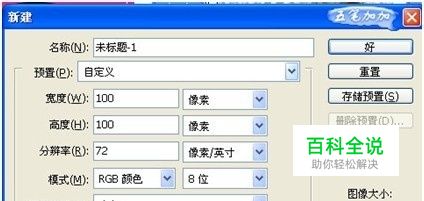 打开PHOTOSHOP,建店标,设置100*100像素