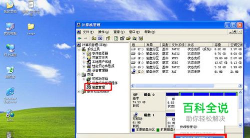 进入"计算机管理”之后",用鼠标单击界面左边的"磁盘管理"的选项,然后就会在右侧会显示计算机上所有的驱动器的盘符,找到可移动磁盘 。