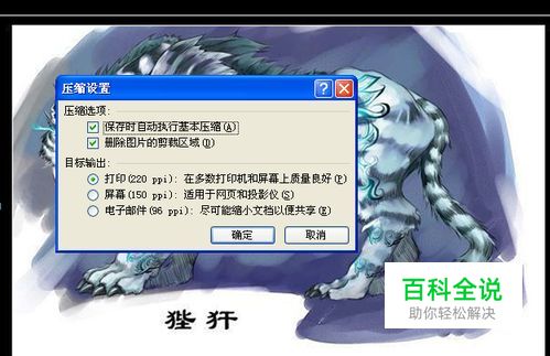 在弹出“压缩图片”对话框中,选择所需的选项,完成以后单击“确定”关闭对话框就可以了。