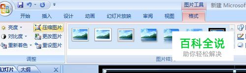 将鼠标指向“格式”,单击左上角“压缩图片”按钮。