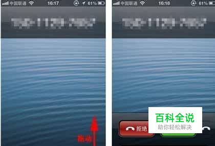 在iOS 6版本后,在有来电拨入iPhone的时候,在来电界面除了可以滑动接听以外,还增加了一个电话图标,和锁屏时的相机图标一样,这电话图标也是可以向上拉的,上拉后我们可以看到拒接菜单。