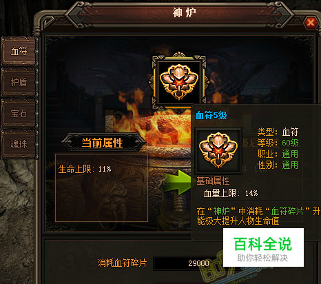 在很多游戏里面,攻击是最重要的,但是其他属性也是相辅相成的,如果你光有攻击,没有血没有防还是打不过别人,甚至可能被别人秒杀,武功再高也怕菜刀就是这个意思。 而防御还分为魔法防御和物理防御,所以有时候选择尤其的困难,但是有一个属性是无视对手的物理、魔法攻击的,那就是血量,血多的人一般称之为血牛,血牛血多, 而不管攻击是物攻还是法攻,最后伤害的其实都是血量,下面就给大家介绍一下原始传奇里面血量怎么增加的以及血符是什么东西。 血符可以增加生命上限的百分比,也就是如果你血量是1万,那增加的百分比就是1万的百分比,你的生命值越高,增加的血量也就越高,而血符等级越高,增加的生命上限也就越多。而血符想要提升等级就需要足够的血符碎片,血符碎片可以通过日常副本、BOSS获得,当然击杀小怪物也会爆出血符碎片。 当血符碎片可以升级后,神炉那边会有感叹号,这时候就可以打开神炉界面,选择血符选项进行升级操作了,值得注意的是血符是没法强化和附魔的。 目前原始传奇一共开放了9个等级的血符,最高为血符9级,增加血量的30%,所以赶紧去升级你的血符吧。