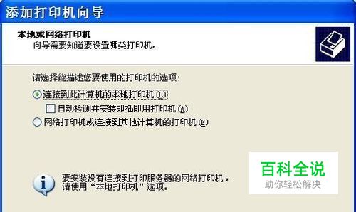 然后选择 “连接到此计算机的本地打印机”,把自动检测并安装即插即用打印机 勾去掉
