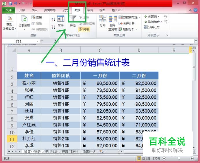 在弹出的对话框中,设置参数。我们以主要关键字“一月份”、排序依据“数值”、次序“降序”为例。
