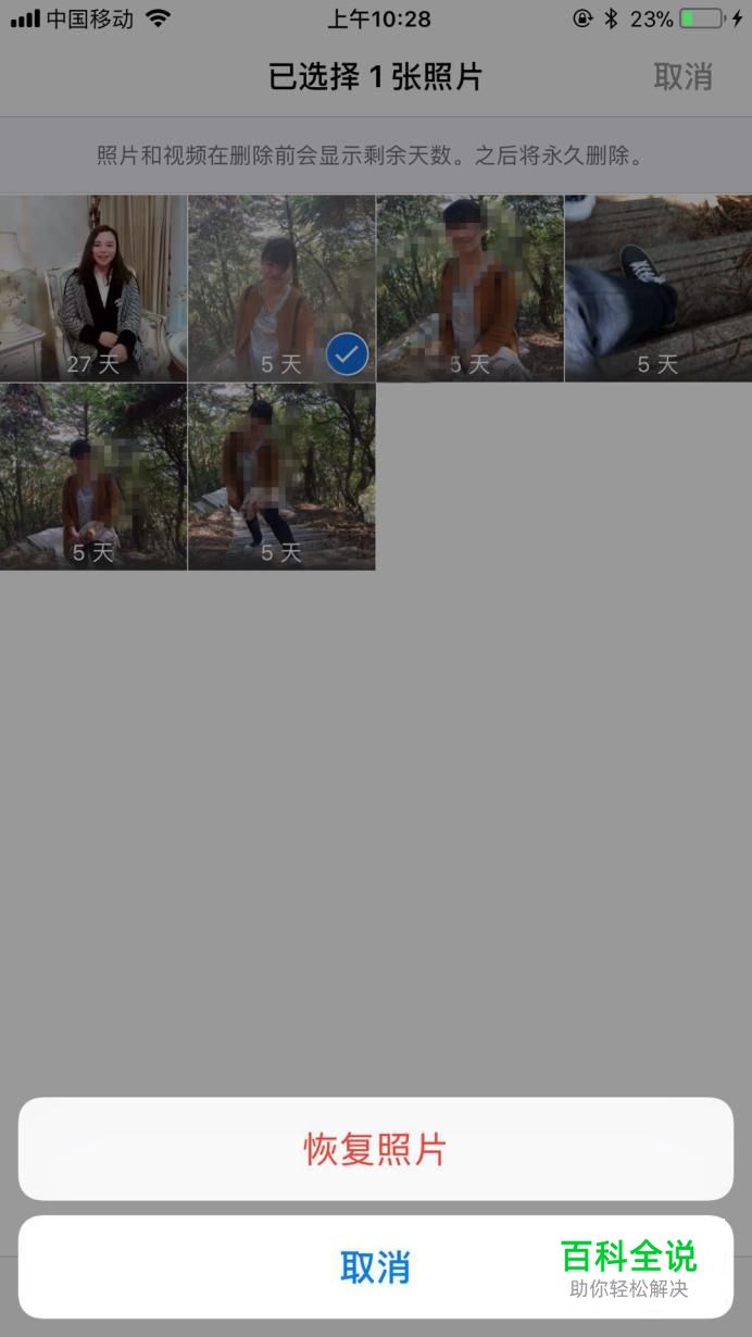 接着选择你要恢复的照片并点击恢复,如下图所示。