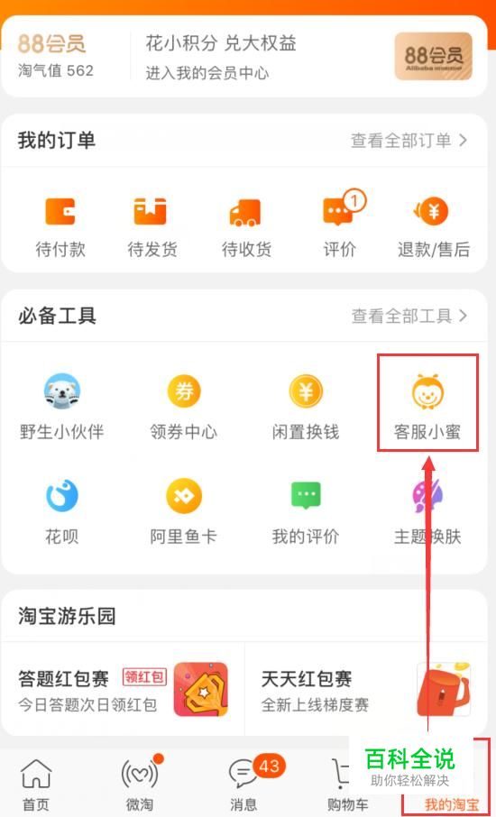 打开淘宝,点击我的淘宝,选择客服小蜜。