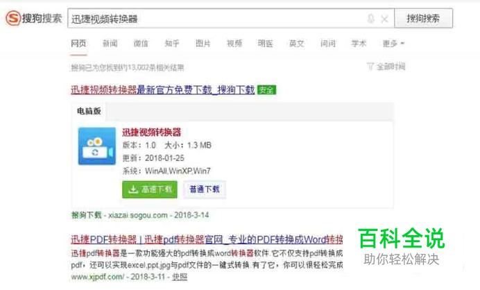 首先上搜狗搜索迅捷视频格式转换器,点击链接进入下载站中下载安装视频格式转换器,